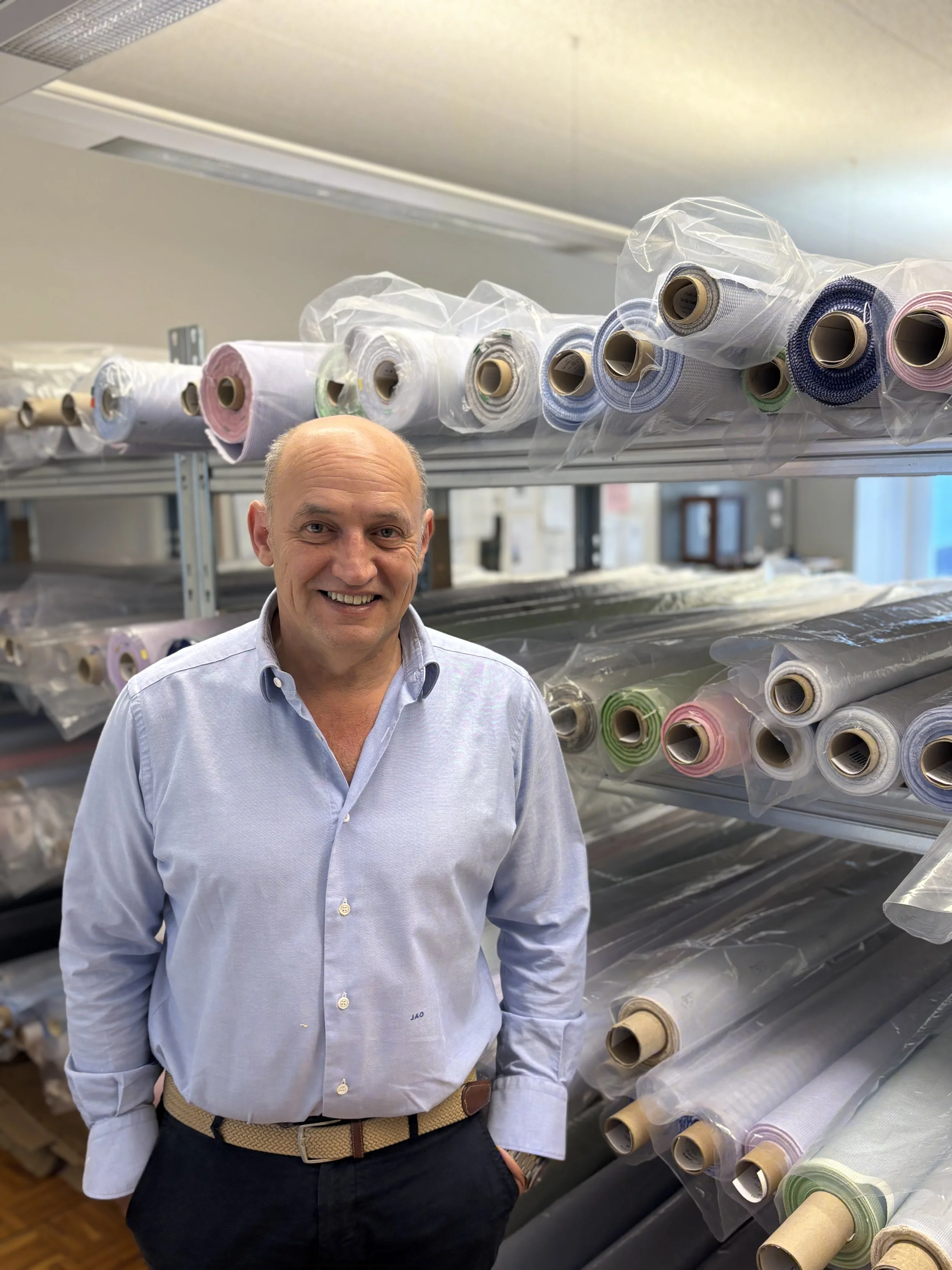 Today, I would like to introduce you to Juan Antonio Ortega and his company, Ortega Textile. Until 2024, Juan served as CEO and Designer of ALUMO. He then took a courageous step that few in the industry would dare to take: founding his own shirting mill from the ground up. Starting a mill means creating fabrics, developing weaves, setting up production, and building trust in a market that has relied on the same suppliers for decades. At the same time, many historic fabric mills have disappeared in recent years, making this a particularly challenging environment to enter.